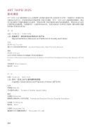 ART TAIPEI 2025 藝術講座 ART TAIPEI 2025 藝術講座以四大主題展開,呈現當代藝術的多元對話與文化思辨。「超越展示|美術館作為 社會與文化的平台」 探討美術館如何超越展覽,形塑公共價值;「同行 – 亞洲 LGBTQ 藝術觀察與實踐」 關注 多元性別視角下的藝術實踐與文化敘事;「跨域與共鳴|原住民藝術在當代的話語與實踐」 聚焦在地文化如何 於國際舞台持續發聲;「後筆墨時代—水墨的現在與未來」 則從台灣出發,延伸至亞洲語境,重新詮釋水墨藝 術的當代表現與未來可能。 第一場 時間 : 10/24( 五 ) 14:00-15:30 主題 : 超越展示|美術館作為社會與文化的平台 Beyond Exhibition | Museums as Platforms for Society and Culture 主持 : 高子衿 Kao Tzu Chin 臺北市立美術館助理研究員 Assistant Researcher, Taipei Fine Arts Museum 講者 : 李玉玲 Yulin Lee 亞洲大學現代美術館及中國醫藥大學美術館雙館長 Director of the Asia University Museum of Modern Art and the China Medical University Museum of Fine Arts 宮島達男 Tatsuo Miyajima 藝術家 Artist 第二場 時間 : 10/24( 五 ) 16:00-17:30 主題 : 同行|亞洲 LGBTQ 藝術觀察與實踐 Together | Observations and Practices of Asian LGBTQ Art 主持 : 胡朝聖 Sean Hu 双方藝廊 創辦人 Founder of Doubles Square Gallery 余政達 Yu Cheng Ta 藝術家 Artist 莊偉慈 Chuang Wei Tzu 臺灣當代文化實驗場策展人 The curator of C-LAB 講者 : 孫啟越 Patrick Sun 驕陽基金會創辦人及執行總監 Founder and Executive Director, Sunpride Foundation 304